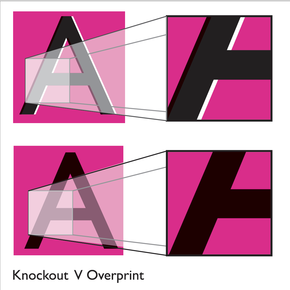 Overprint is the safer option when choosing between Knockout vs Overprint, as you would have to be very precise when using the knockout technique, or risk dealing with misregistration.