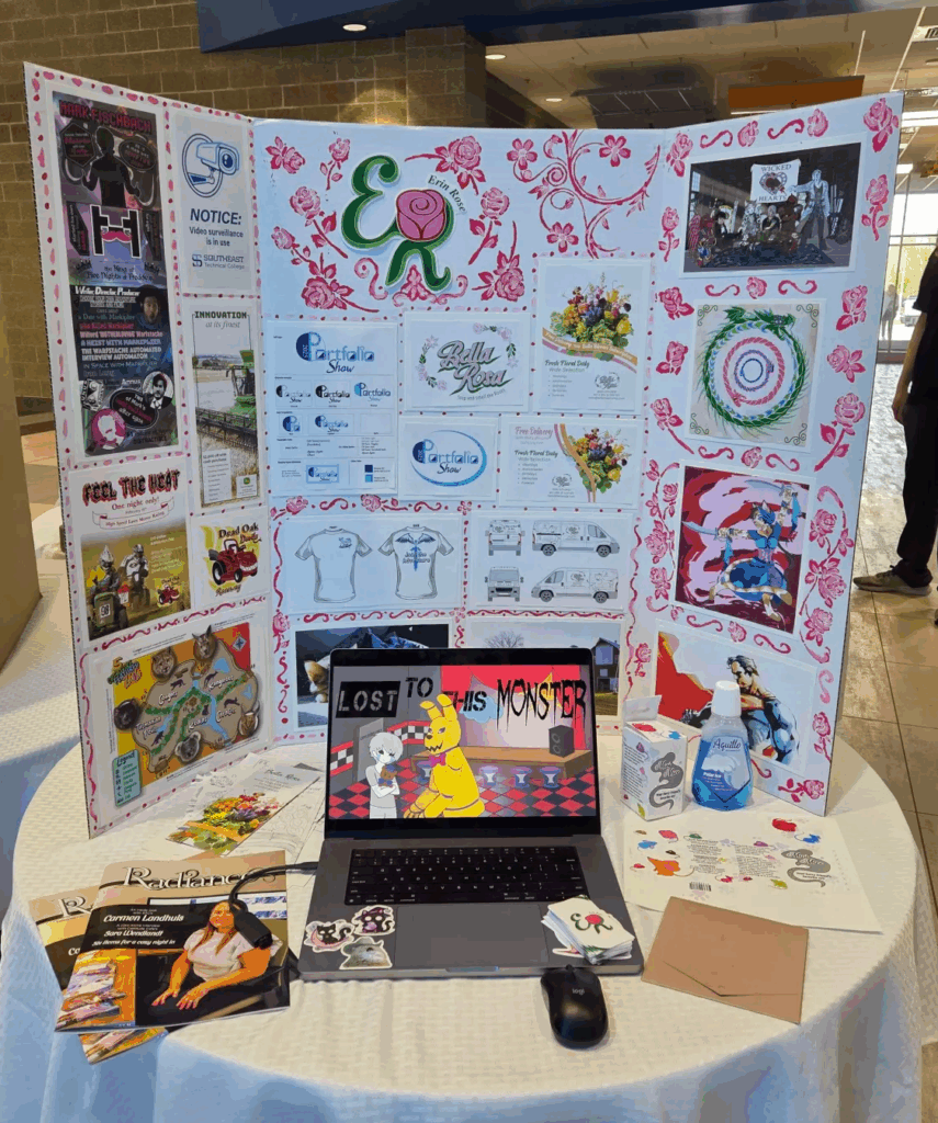 Portfolio BoardBy erin.pazour / May 4, 2025 This was my table at the Portfolio Show. It was difficult to decide which projects I wanted to display but I think it turned out well overall. I also painted the back of my board.